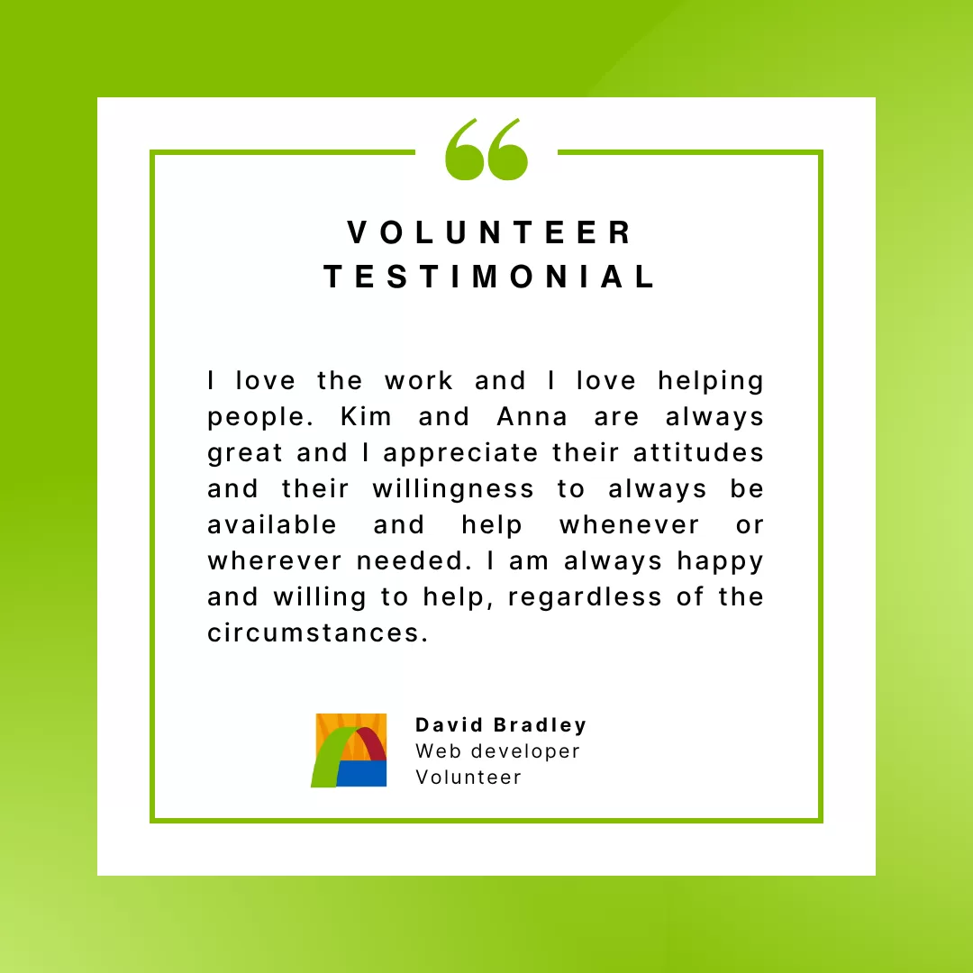 We are grateful for David — and for all our incredible volunteers — who give their time, skills, and hearts to make a difference every single day.