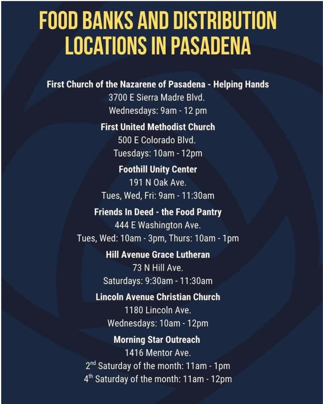 In light of the impacted SNAP benefits, the City of Pasadena has complied a list of food banks and distribution centers to help impacted residents.